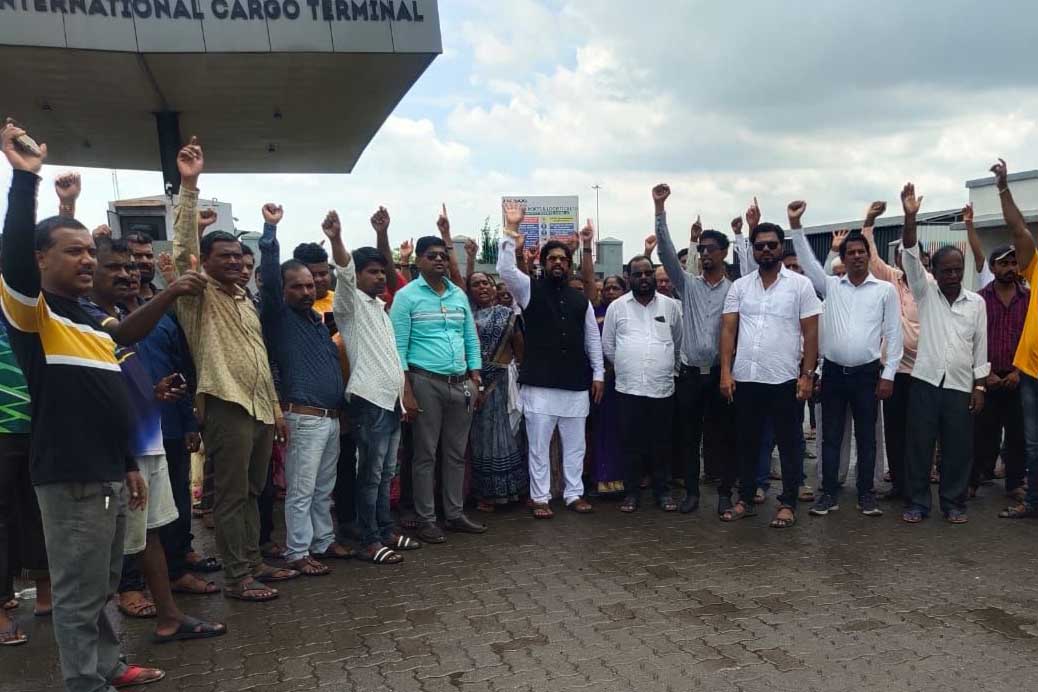 त्यामुळे आपल्या कळंबूसरे येथील शेतकऱ्यांनी आपल्या १) ज्या शेतकऱ्यांना काम दिले नाही त्यांचे शंभर टक्के भरती करून काम देण्यात यावे. २) हाऊस किपिंग या पदावर बेकायदेशीर झालेली भरती रद्द करण्यात यावी ३) पुढील होणारी भरती ही शेतकऱ्यांना विश्वासात घेऊनच करावी ४)१०० टक्के भरती न केल्यास उर्वरित शेतकऱ्यांना दिलेल्या लेखी आश्वासनाची पूर्तता करून पगार सुरु करण्यात यावे. या विविध मागण्यांसाठी गुरुवारी ( दि२३) गेट आंदोलन कामगार नेते संतोष घरत यांच्या नेतृत्वाखाली उभारले.
