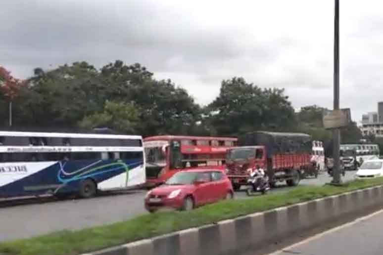 सायन पनवेल महामार्गावर खाजगी ट्रॅव्हल्स बस चालकांकडून बेशिस्त पार्किंगमुळे वाहतूक कोंडी