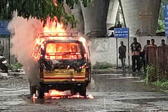 नवीन पनवेल उड्डाणपुलाखाली असलेल्या कांडपिळे सी एन जी पंपामध्ये ५ जुलै रोजी दुपारी पाऊणे तीनच्या सुमारास स्कूल व्हॅन (क्रमांक- एम एच- ४६- जे -०३०१) घेऊन चालक गॅस भरण्यासाठी गेला. त्यानंतर सदर गाडी बाहेर काढून चालक थोडा पुढे गेला असता अचानक गाडीने पेट घेतला. यावेळी परिसरातील नागरिकांनी सदर ठिकाणी धाव घेऊन अग्निशमन दलाला घटनास्थळी प्राचारण केले. त्यानंतर अग्निशमन दलाच्या जवानांनी आग आटोक्यात आणली. या आगीमध्ये गाडीचे मोठे नुकसान झाले आहे. आग कशा मुळे लागली याचे कारण अद्याप स्पष्ट झाले नाही आहे .