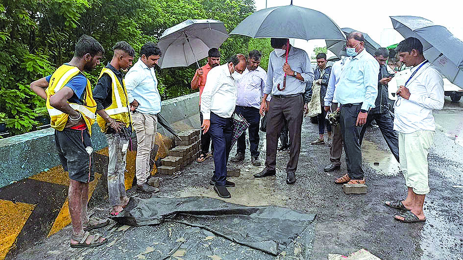 आयुक्त अभिजीत बांगर यांच्याकडून भर पावसात नवी मुंबईतील खड्डे दुरुस्ती कामांची प्रत्यक्ष पाहणी