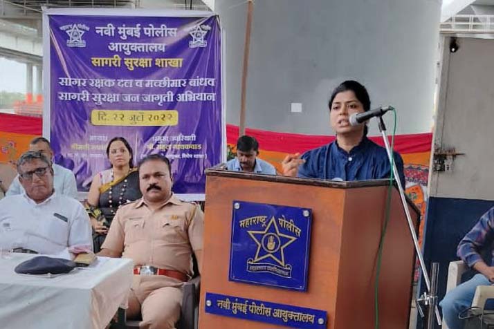 सागरी मार्गाने होणारा संभाव्य धोका लक्षात घेता, नवी मुंबई पोलिस आयुक्त कार्यालयातंर्गत सागरी सुरक्षा शाखेकडून शुक्रवारी सायंकाळी उलवे येथील जेट्टीवर सागर रक्षक दल सदस्य व मच्छिमारांसाठी सागरी सुरक्षा जनजागृती अभियानाचे आयोजन करण्यात आले होते. या जनजागृती अभियानाच्या अध्यक्ष म्हणून विशेष शाखेच्या पोलीस उपआयुक्त रुपाली अंबुरे उपस्थित होत्या. यावेळी त्यांनी उपस्थित सागर रक्षक दलाचे सदस्य व मच्छिमार यांच्याशी संवाद साधताना नवी मुंबई पोलिस आयुक्तालयातर्फे सागरी सुरक्षेसंदर्भात सुरु करण्यात आलेल्या कोस्टल हेल्पलाईन क्रमांक 1093 ची उपस्थितांना माहिती देऊन सदर हेल्पलाईनचा वापर करण्याचे आवाहन केले.
