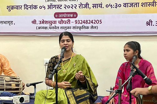 यावेळी सुप्रसिद्ध गायिका मुग्धा गावकर यांनी शास्त्रीय व उपशास्त्रीय गायन सादर करताना अनेक गायकीचे पैलू आपल्या कलेतून सादर केले. त्यांनी पटदिप रागामधील 'बडा खयाल' ने कार्यक्रमाची सुरुवात केली. त्यानंतर पंडित जसराज यांचे प्रसिद्ध अभंग 'ओम नमो भगवते वासुदेवाय', या पंढरीचे सुख, ध्यान लागले रामाचे, हे अभंग सादर करून बाजे मुरलिया या प्रसिद्ध अभंगाने कार्यक्रमाचा समारोप केला. अतिशय सुंदरपणे झालेल्या कार्यक्रमात त्यांच्या गायनाने रंगत आणली, त्यामुळे दोन तास चाललेल्या या कार्यक्रमात रसिक आपल्या आसनावर कायम आसनस्थ होते. त्यांना हार्मोनियमवर वरद सोहनी, तबला साथ रामदास म्हात्रे, पखवाज मधुकर धोंगडे, तर गुरुदास कदम यांची टाळवर साथ दिली. यावेळी आयोजकांच्या वतीने आमदार प्रशांत ठाकूर यांचे वाढदिवसानिमित्त अभिष्टचिंतन करण्यात आले. हा कार्यक्रम यशस्वी करण्यासाठी कार्यक्रमाचे संयोजक सुप्रसिद्ध गायक रायगड भूषण पंडित उमेश चौधरी व सहकाऱ्यांनी विशेष मेहनत घेतली. त्याबद्दल रसिकांनीही त्यांचे कौतुक केले.