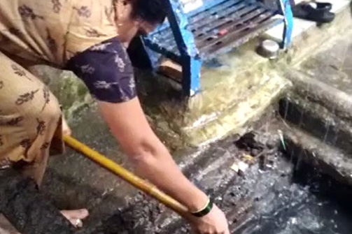 मनपाच्या वतीने मान्सून पूर्व नालेसफाई पूर्ण केल्याचा दावा केला जात आहे. मात्र ही सफाई योग्य रित्या होत नसल्याने आज शहरात जागो जागी पाणी भरून नागरीकांचे हाल होत आहेत. हीच परिस्थिती तुर्भे इंदिरा नगरमध्ये आहे. या भागात बंदिस्त गटारांची धूळ फेक सफाई करण्यात आली आहे. नालेसफाई योग्य न केल्याने पुन्हा एकदा या भागात रविवार दिनांक ७ ऑगस्ट रोजी रहिवाशांच्या घराघरात पाणी भरले होते आणि या पाण्याचा निचरा करण्यासाठी या भागातील रहिवाशांवर स्वतः हुन गटार साफ करण्याची नामुष्की ओढवली होती. याबाबत शिवसेना विभाग प्रमुख महेश कोटीवाले यांनी वारंवार तक्रारी करून देखील स्वच्छता निरीक्षकांकडून संबंधित ठेकेदारास पाठीशी घालण्याचे काम करीत आले आहेत. त्यामुळे येत्या गणेशोत्सवापूर्वी या भागातील गटारे साफ न केल्यास या गटारातील गाळ मनपा अधिकाऱ्यांच्या दालनात फेकला जाईल असा इशारा महेश कोटीवाले यांनी दिला आहे.