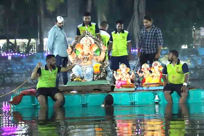 नैसर्गिक जलसंपदा जपणूकीच्या दृष्टीने नागरिकांनी सर्व आठही विभाग कार्यालय क्षेत्रात महापालिकेने तयार केलेल्या १३४ कृत्रिम विसर्जन तलावात श्रीमूर्तींचे विसर्जन करावे, या महापालिका आयुक्त अभिजीत बांगर यांनी केलेल्या आवाहनाला पर्यावरणप्रेमी नागरिकांनी उत्तम प्रतिसाद दिला. या १३४ कृत्रिम विसर्जन तलावात ४९१४ घरगुती, २१ सार्वजनिक मिळून ४९९५ गणेशमूर्तींचे आणि ७६५ गौरींचे विसर्जन करण्यात आले.