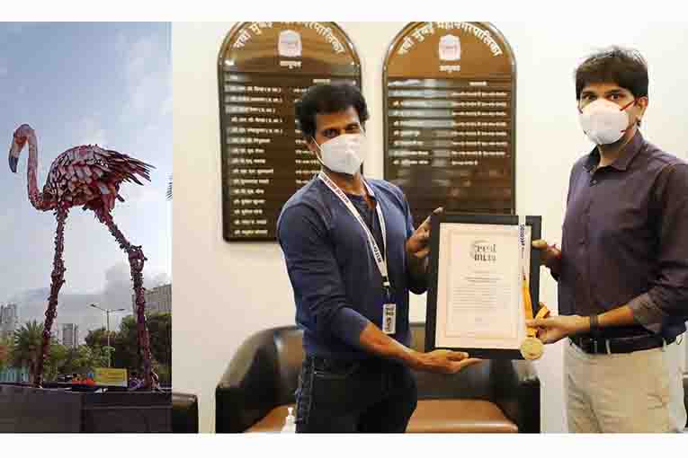 ज्वेल ऑफ नवी मुंबई येथील ‘पलेमिंगो शिल्पाकृती'ला राष्ट्रीय विक्रमाचे प्रमाणपत्र
