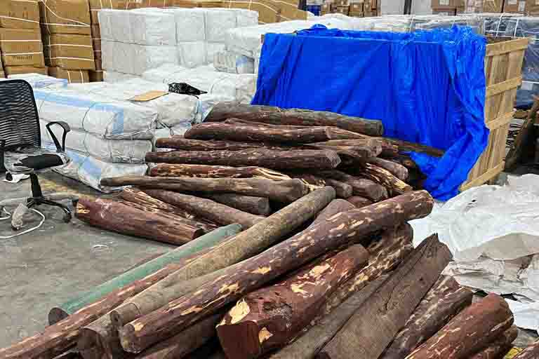 जेएनपीटी बंदरातुन एका कंटेनरमधुन रक्तचंदन तस्करी करुन परदेशात पाठविण्यात येत असल्याची माहिती कस्टमच्या डीआरआय विभागाला मिळाली होती. त्यानुसार गत 17 सफ्टेंबर रोजी डीआरआयच्या पथकाने जेएनपीटीत आलेल्या संशयीत कंटेनरचा शोध घेऊन त्याची तपासणी केली. यावेळी सदर कंटेनमध्ये 3030 किलो रक्तचंदनाचा साठा आढळुन आला असून तीन पार्सलमध्ये हा रक्तचंदनाचा साठा कंटेनरमध्ये लपवुन ठेवण्यात आल्याचे आढळुन आले. तसेच सदर कंटेनरमध्ये तार-खिळे असल्याचे भासवून सदर रक्तचंदनाचा साठा परदेशात पाठविण्यात येत असल्याचे आढळुन आले. मात्र डीआरआयच्या पथकाने वेळीच कारवाई केल्यामुळे चंदन तस्करांचा डाव फसला आहे. या कारवाईत पकडण्यात आलेले रक्त चंदन तब्बल अडीच कोटी रुपये किंमतीचे आहे.