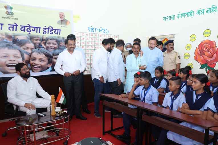 नवी मुंबई : फाईव्ह जी नेटवर्कच्या राष्ट्रव्यापी शुभारंभ कार्यक्रमासाठी निवडलेल्या पनवेल मधील शाळेतील विद्यार्थ्यांशी संवाद साधताना मुख्यमंत्री एकनाथ शिंदे स्वता विद्यार्थी बनले. खुर्ची ऐवजी त्यांनी बेंचवर बसणे पसंत केले आणि विद्यार्थ्यांशी गप्पा मारताना मुख्यमंत्र्यांनी फाईव्ह जी चे महत्व सांगितले. क्रांतीकारक क्षणाचे आपण साक्षीदार असल्याचे सांगत शिक्षण, कृषी, आरोग्य, बॅंकींग यासह सर्वच क्षेत्रात फाईव्ह जी तंत्रज्ञानाने क्रांती होणार असल्याचे मुख्यमंत्र्यांनी सांगितले.