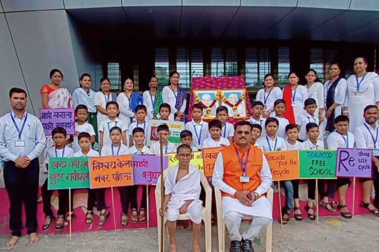महात्मा गांधींनी सत्य अहिंसा या तत्त्वावर चालून भारत मातेला मुक्त करण्यासाठी केलेला त्याग आणि प्रयत्न तर लालबहादूर शास्त्री सारख्या अत्यंत साध्या आणि तत्व प्रिय व्यक्तिमत्वाने भारत मातेसाठी केलेल्या निस्पृह त्याग आणि सेवेचे वर्णन विद्यार्थ्यांनी अत्यंत मार्मिक शब्दात व्यक्त केले. शिक्षिका आरती बोरसे यांनी सादर केलेल्या गीताने उपस्थितांची मने जिंकली. शिक्षक आशिष रंगारी यांनी भजन सादर केले. शिक्षक प्रमोद बामले यांनी तंबाखूमुक्त शाळा, कविता वाडे यांनी माझी वसुंधरा बाबतची प्रतिज्ञा आणि स्वच्छता हीच सेवा या विषयावर प्रतिज्ञा अश्विनी शेलार यांनी उपस्थित विद्यार्थी, शिक्षक, पालक आणि कर्मचारी यांना दिली.