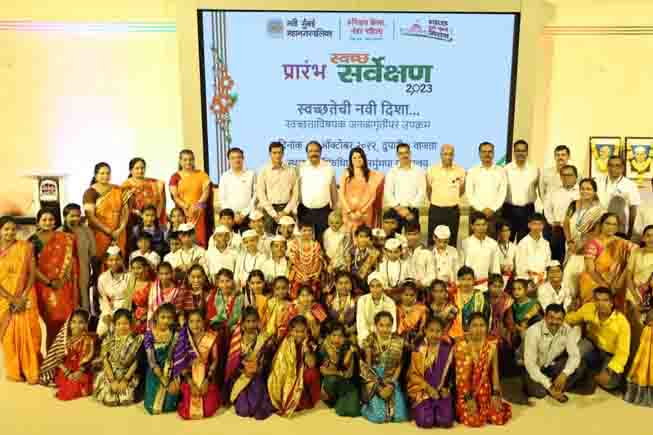 नवी मुंबई महापालिका मुख्यालयातील ॲम्पिथिएटरमध्ये आयोजित ‘प्रांरभ स्वच्छ सर्वेक्षण-२०२३' या विशेष कार्यक्रमाचे आयोजन करण्यात आले होते. स्वच्छतेची नवी दिशा या शिर्षकांतर्गत आयोजित सदर कार्यक्रमाप्रसंगी महात्मा गांधी आणि लालबहादूर शास्त्री यांना जयंती निमित्त अभिवादन करुन प्रतिकात्मक रितीने स्वच्छताज्योती उजळविण्यात आल्या.