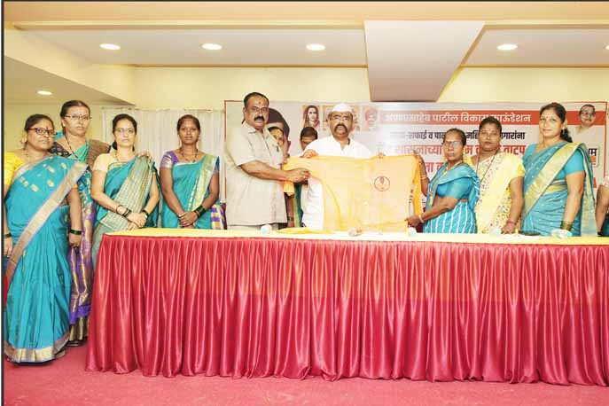 नवी मुंबई ः ‘अण्णासाहेब पाटील विकास फाऊंडेशन'च्या वतीने केंद्र सरकरचे ई-श्रम नोंदणी अभियान ३ ऑवटोबर रोजी एपीएमसी मधील माथाडी भवन येथे राबविण्यात आले. यावेळी नोंदणी केलेल्या ई-श्रम कार्डचे वाटप आणि पालावाला महिला कामगारांना रेनकोटचे वाटप तसेच महिला मेळावा संपन्न झाला.