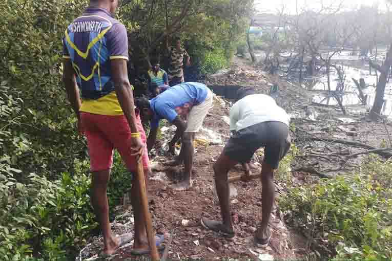 मोठे बांध नेस्तनाभूत करुन ३००० खारफुटींचे संरक्षण