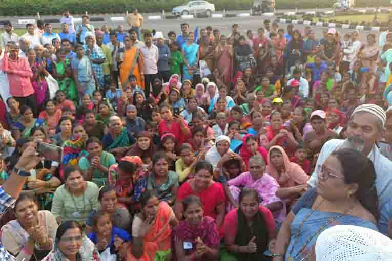 नवी मुंबई ः नवी मुंबई महापालिकेने प्रसिध्द केलेल्या प्रारुप विकास आराखड्यामध्ये झोपडपट्टी अस्तित्वात असणाऱ्या जागेवर सध्याच्या जीआयएस नुसार इतर आरक्षण रद्द करुन सदर जागा लोकांच्या रहिवासासाठी आरक्षित करावी. तसेच विकास आराखड्यात असंघटीत कामगार, झोपडपट्टीतील रहिवाशी, फेरीवाले, नाका कामगार, घरेलू कामगार, महिला-मुले यांचा सार्वभौम विचार करावा अशी मागणी घेऊन ‘घर हवक संघर्ष समिती'च्या माध्यमातून सदर घटकांनी महापालिका मुख्यालयावर धडक दिली. दरम्यान, सदर मोर्चावेळी ‘घर हवक संघर्ष समिती'च्या शिष्टमंडळाने महापालिका नगररचना विभागाचे सहायक संचालक सोमनाथ काेंकाण यांची भेट घेऊन त्यांना मागण्यांचे निवेदन दिले. यानंतर सोमनाथ काेंकाण यांनी ‘समिती'ला त्वरित लेखी पत्र देऊन ‘घर हवक संघर्ष समिती'कडून करण्यात आलेल्या सूचना नवी मुंबई महापालिकेच्या प्रारुप विकास आराखडाच्या अनुषंगाने गठीत करण्यात येणाऱ्या तज्ञांच्या समितीसमोर मांडण्यात येतील. त्यावर नियोजन समितीच्या निर्णयानुसार योग्य ती कार्यवाही करण्यात येईल, असे आश्वासन काेकाण यांनी दिले.