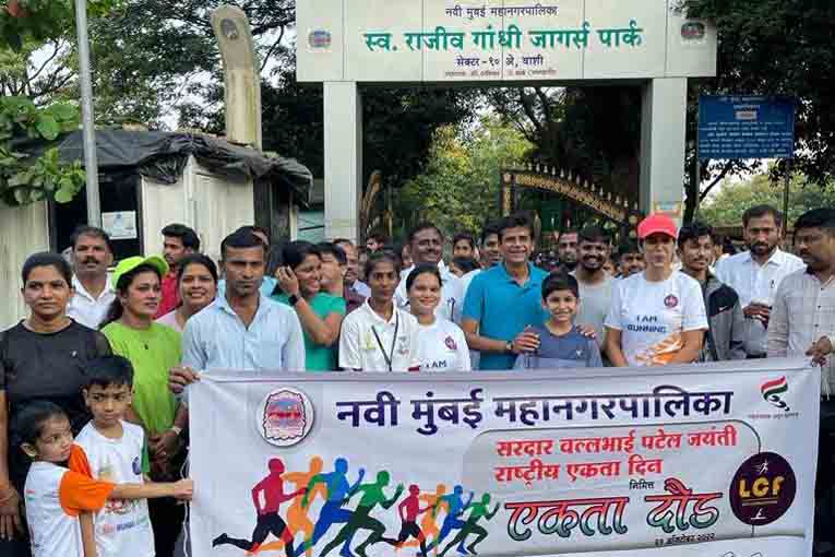 नवी मुंबई ः शासन निर्देशानुसार नवी मुंबई महापालिकेच्या वतीने एकात्मतेचा संदेश प्रसारित करणा-या विविध उपक्रमांचे आयोजन करण्यात येत आहे. या संदेश प्रसारणाला लोकसहभागाची जोड देत महापालिका आयुक्त राजेश नार्वेकर यांच्या मार्गदर्शनानुसार ‘एकता दौड'चा अभिनव उपक्रम आयोजित करण्यात आला होता.