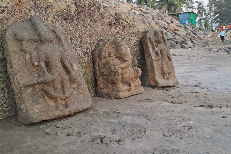 उरणच्या पीरवाडी समुद्र किनाऱ्यावर अवतरल्या दुर्मिळ पाषाणातील देवदेवतांच्या मूर्ती