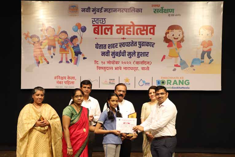 महापालिका आयुक्त राजेश नार्वेकर यांच्या शुभहस्ते विष्णुदास भावे नाट्यगृहात बालदिनी संपन्न झालेल्या स्वच्छ बाल महोत्सव प्रसंगी चित्रकला आणि निबंध स्पर्धेत सहभागी गुणवतं विद्यार्थ्यांना पारितोषिके देऊन सन्मानित करण्यात आले. याप्रसंगी अतिरिक्त आयुक्त सुजाता ढोले, आपत्ती व्यवस्थापन विभागाच्या उपायुक्त मंगला माळवे, घनकचरा व्यवस्थापन विभागाचे उपायुक्त तथा ‘स्वच्छ भारत मिशन'चे नमुंमपा नोडल अधिकारी डॉ. बाबासाहेब राजळे, शिक्षण विभागाचे उपायुक्त योगेश कडुस्कर आणि इतर मान्यवर उपस्थित होते.