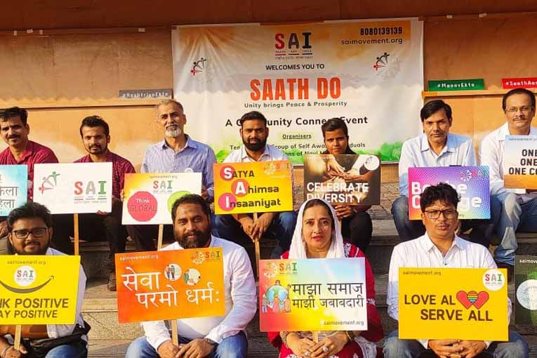 नवी मुंबई ः नवी मुंबईतील विविध सामाजिक संस्था आणि संघटनांनी एकत्र येऊन तयार केलेल्या साथ आओ इंडिया (एसएआय) या व्यासपीठाच्या माध्यमातून समाजातील शांती आणि समृध्दीसाठी तसेच एकतेचे महत्त्व सांगण्यासाठी वेगवेगळे कार्यक्रम आणि उपक्रम राबविण्यास सुरुवात केली आहे. याचाच एक भाग म्हणून १९ नोव्हेंबर रोजी विविध संघटनांच्या प्रतिनिधींनी साथ दो इंडिया मोहिमेअंतर्गत वाशीतील शिवाजी चौकात नागरिकांनी समाजात शांती आणि एकता कायम ठेवून समता, बंधुताची लोकशाही मुल्ये जपावीत, असा संदेश दिला.
