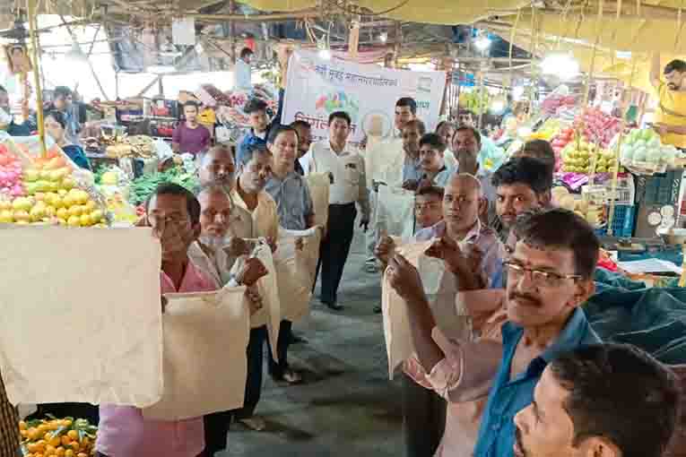 वाशी, सेक्टर 9 येथील भाजी मार्केटमध्ये व्यापारी व नागरिकांमध्ये प्लास्टिक प्रतिबंधाविषयी जनजागृती करण्यात आली. व्यापा-यांनी प्रतिबंधित प्लास्टिकचा वापर करू नये याविषयी समज देण्यात आली तसेच 200 हून अधिक कापडी पिशव्यांचे मोफत वितरण करण्यात आले.