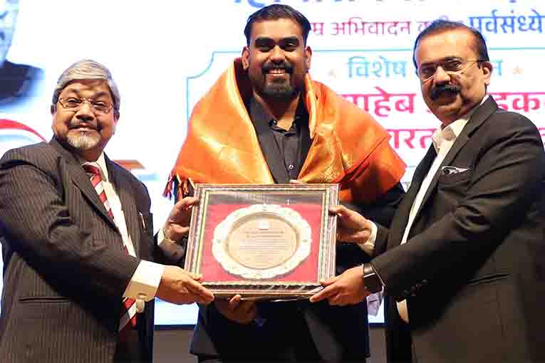 आयुक्त राजेश नार्वेकर यांच्या शुभहस्ते, ज्येष्ठ अर्थतज्ज्ञ डॉ. भालचंद्र मुणगेकर यांच्या उपस्थितीत शुभमचा गौरव