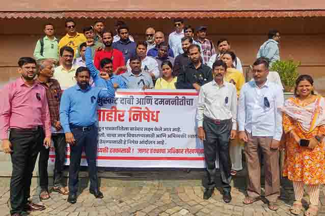वाशी येथे शहरातील पत्रकारांनी दडपशाही विरोधात आंदोलन