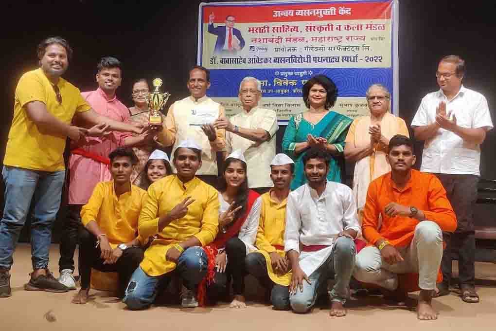 खारघर: अन्वय व्यसनमुक्ती केंद्र, साहित्य संस्कृती व कला मंडळ आणि नशाबंदी मंडळ महाराष्ट्र राज्य यांच्या संयुक्त विद्यमाने वाशी येथील साहित्य मंदिरात डॉ बाबासाहेब आंबेडकर आंतर महाविद्यालयीन व्यसनमुक्ती पथनाट्य स्पर्धा नुकताच पार पडल्या. या स्पर्धेत सिद्धार्थ महाविद्यालय मुंबई, शहापूर व उल्हासनगर, कामोठे, ज्ञानसाधना ठाणे अशा अनेक महाविद्यालय सहभागी झाल्या होत्या. स्पर्धेत विद्यार्थांनी व्यसनांच्या समस्येबरोबरच या प्रश्नावर ठोस उपाययोजना अनेक महाविद्यालयांनी आपल्या पथनाट्यातून प्रभावीपणे मांडल्या.या स्पर्धेत प्रथम क्रमांक एस एस टी महाविद्यालय उल्हासनगर, द्वितीय क्रमांक सोनू भाऊ बसवंत कला आणि वाणिज्य महाविद्यालय शहापूर आणि तृतीय क्रमांक सतीश प्रधान ज्ञानसाधना कॉलेज ठाणे यांनी पटकावले. यावेळी 'येस माय डियर, 'संगीत स्वयंवर' तसेच 'घायाळ' अशा नाटकात विविध भूमिका केलेल्या अभिनेत्री आणि दिग्दर्शिका कविता विभावरी तसेच नवरी मिळे नवऱ्याला' या मालिकेतून, चित्रपट आणि नाटकात अभिनय करणारे अभिनेता, कवी, आणि 'पीयूष बबेले' लिखित 'नेहरू: मिथक और सत्य' या पुस्तकाचे मराठी अनुवादक अक्षय शिंपी हे दुसरे परीक्षक म्हणून काम पहिले.