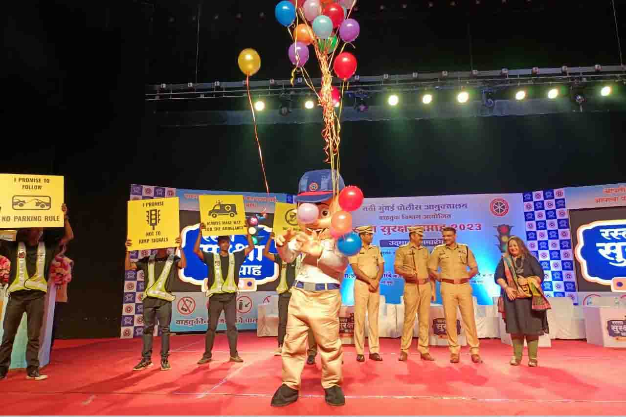 यावेळी विशेष अतिथी म्हणून उपस्थित असलेल्या व्हॉईसओवर आर्टिस्ट मेघना एरंडे यांनी आपल्या शैलीत वेगवेगळ्या आवाजाच्या माध्यमातून वाहतूक नियम पाळण्याचा संदेश देत सर्वांचे मनोरंजन केले. यावेळी नवी मुंबई वाहतूक विभागाचे पोलीस उपयायुक्त तिरुपती काकडे यांनी आपल्या प्रस्तावनेत नवी मुंबई शहरातील वाहतूक समस्या सोडविण्यासाठी वेगवेगळे उपक्रम राबविण्यात येत असल्याचे सांगितले.