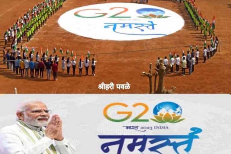 नवी मुंबई ः जी ट्वेन्टी राष्ट्रगटाच्या ‘शिखर परिषद'च्या यजमानपदाचा मान यावर्षी २०२३ साठी भारताला मिळाला असून पंतप्रधान नरेंद्र मोदी या राष्ट्रगटाच्या अध्यक्षस्थानी विराजमान झाले आहेत. या ‘शिखर परिषद'च्या स्वागतासाठी नवी मुंबई भारतीय जनता पक्षाच्या वतीने माजी आमदार संदीप नाईक यांच्या मार्गदर्शनाखाली कोपरखैरणे येथील रा. फ. नाईक विद्यालयाच्या प्रशस्त पटांगणावर ५६ फुट आकाराची भव्य रांगोळी साकारण्यात आली आहे. या भव्य रांगोळीमध्ये जी-२० राष्ट्रगटाचा २०२३ सालासाठीचा नवीन लोगो