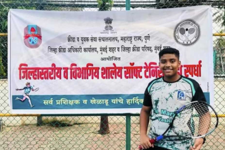 वाशी ः वाशी मधील सेंट मेरी मल्टी पर्पज स्वूÀल मध्ये दहावी मध्ये शिकत असलेल्या राज संजय शिंदे याने जिल्हा स्तरीय आणि विभागीय शालेय सॉपट बॉल टेनिस स्पर्धेत नेत्रदीपक कामगिरी करत सुवर्ण पदक पटकावले आहे.