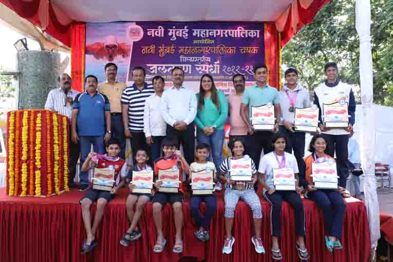 सदर नवी मुंबई महापालिका चषक जिल्हास्तरीय जलतरण स्पर्धेमध्ये ४०० स्पर्धकांनी सहभागी होत उत्स्फुर्त प्रतिसाद दिला. स्पर्धेत विजेत्या जलतरणपटुंना महापालिका क्रीडा-सांस्कृतिक कार्य विभागाचे उपायुक्त सोमनाथ पोटरे, क्रीडा अधिकारी रेवप्पा गुरव, राष्ट्रीय प्रशिक्षक संतोष पाटील, शिवछत्रपती पुरस्कार विजेते जलतरणपटू तथा ‘ठाणे जिल्हा जलतरण असोसिएशन'चे सचिव गोकुळ कामथ आणि शिवछत्रपती पुरस्कार विजेत्या जलतरणपटू ऋतुजा उदेशी यांच्या शुभहस्ते प्रशस्तीपत्र आणि मेडल देऊन सन्मानित करण्यात आले. याप्रसंगी नुकत्याच भोपाळ येथे झालेल्या खेलो इंडिया युथ गेम्स-२०२२ मध्ये प्री रिलेमध्ये सुवर्ण, मेडली रिलेमध्ये सुवर्ण आणि २०० मीटर बॅकस्ट्रोक मध्ये कांस्यपदक पटकाविणाऱ्या रिषभ दास या नवी मुंबईकर जलतरणपटुचा विशेष सन्मान करण्यात आला.