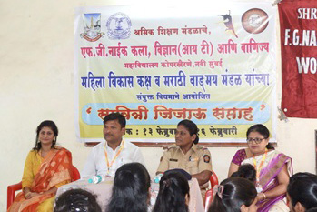 कोपरखैरणेतील एफ.जी. नाईक महाविद्यालयात महिला विकास कक्ष व मराठी वाड:मय मंडळ यांच्या संयुक्त विद्यमाने सावित्री जिजाऊ सप्ताह साजरा