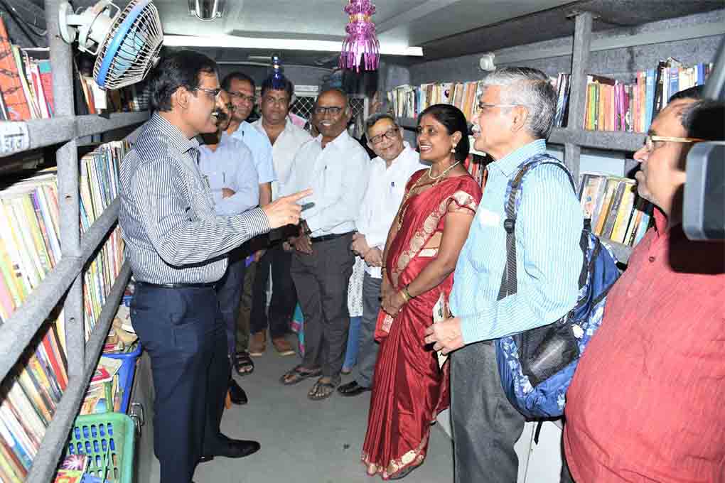 मराठी ग्रंथ संग्रहालय द्वारे सुरु करण्यात आलेल्या फिरते ग्रंथालयाची पाहणी ठाणे जिल्हाधिकारी अशोक शिनगारे यांनी यावेळी केली. या फिरत्या ग्रंथालयाच्या माध्यमातून विविध पुस्तके वाचकांना वाचावयास मिळत आहेत.