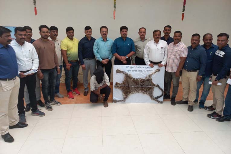 पनवेल मधील मुंबई गोवा हायवे रोडवरील खारपाडा टोलनाका येथे एक व्यक्ती बिबटया वाघाची कातडी विकण्यासाठी येणार असल्याची माहिती गुन्हे शाखा युनिट-2 च्या पथकाला मिळाली होती. त्यानुसार वरिष्ठ पोलीस निरीक्षक रविंद्र पाटील यांच्या सुचनेनुसार सहाय्यक पोलीस निरीक्षक प्रविण फडतरे व त्यांच्या पथकाने वन विभागाच्या अधिका-यांसह गत मंगळवारी रात्री मुंबई गोवा हायवे रोडवरील खारपाडा टोलनाका येथे सापळा लावला होता. त्याठिकाणी रात्री सव्वा नऊ वाजण्याच्या सुमारास जितेंद्र खोतू पवार उर्फ संजु हा संशयास्पदरित्या आला असता, दबा धरुन बसलेल्या गुन्हे शाखेच्या पथकाने त्याला ताब्यात घेतले. त्यानंतर पोलिसांनी त्याच्या जवळ असलेल्या सॅकबॅगेची तपासणी केली असता, त्यात बिबटयाची कातडी आढळून आली. त्यामुळे गुन्हे शाखेच्या पथकाने त्याच्याकडे बिबटयाची कातडी कुठून आणली, बिबटयाची शिकार कशाप्रकारे केली, याबाबत त्याच्याकडे चौकशी केली. मात्र त्याने त्याबाबत समाधानकारक माहिती दिली नाही. त्यामुळे गुन्हे शाखेच्या पथकाने सुमारे अडीच लाख रुपये किंमतीची बिबटयाची कातडी जप्त केली. त्यानंतर जितेंद्र खोतू पवार उर्फ संजु याच्या विरोधात पनवेल तालुका पोलीस ठाण्यात वन्यजीव संरक्षण कायद्याअंतर्गत गुन्हा दाखल करुन त्याला अटक केली.