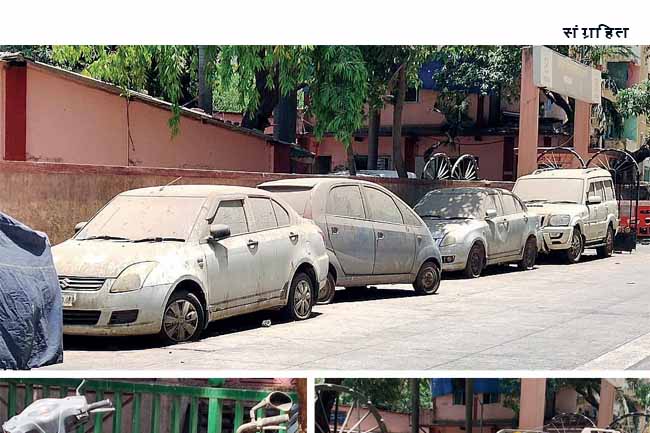 विविध गुह्यातील अनेक वाहने पोलीस ठाण्याच्या आवारात गेल्या काही वर्षापासून पडून