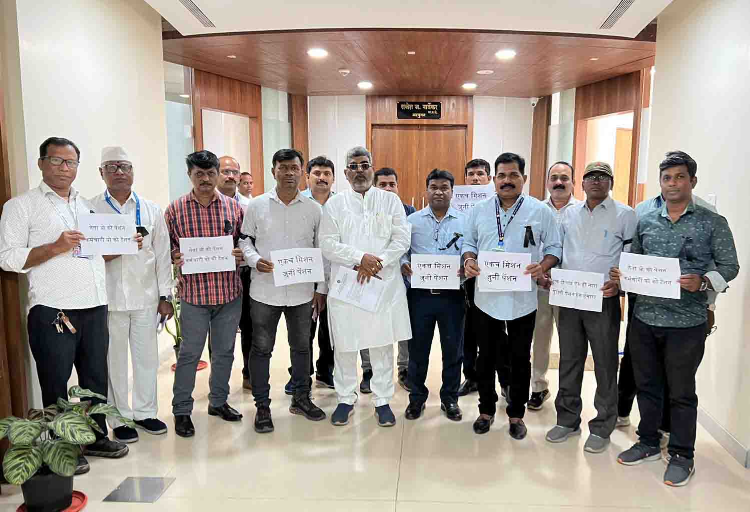 महापालिका कर्मचारी आणि अधिकाऱ्यांनी जुन्या पेन्शनसाठी समर्थनार्थ घोषणाबाजीही
