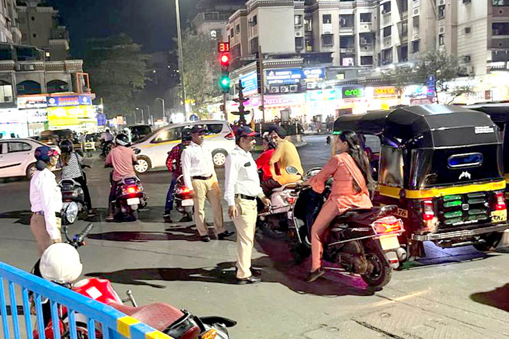 कोपरखैरणे वाहतूक पोलिसांची बेशिस्त वाहन चालकांवर कारवाई