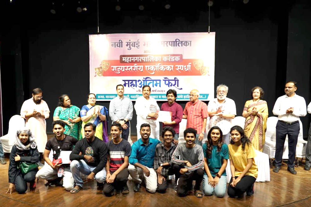 याप्रसंगी अतिरिक्त आयुक्त संजय काकडे, क्रीडा-सांस्कृतिक कार्य विभागाचे उपायुक्त सोमनाथ पोटरे, महापालिका सचिव चित्रा बाविस्कर, शिक्षणाधिकारी अरुणा यादव, वाशीचे सहा. आयुक्त दत्तात्रय घनवट, क्रीडा अधिकारी रेवप्पा गुरव तसेच महाअंतिम फेरीचे परीक्षक ज्येष्ठ नाट्य दिग्दर्शक कुमार सोहोनी, विजय केंकरे, अभिनेत्री ईला भाटे त्याचप्रमाणे प्राथमिक फेरीचे परीक्षक अभिनेते शेखर फडके, रवी वाडकर, वैभव सातपुते, आदि उपस्थित होते.