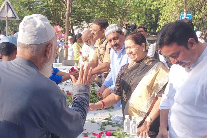 यावेळी आ. सौ. मंदाताई म्हात्रे आणि पोलीस आयुवत मिलिंद भारंबे यांनी मुस्लीम बांधवांना गुलाब देऊन रमजान ईदच्या शुभेच्छा दिल्या. पवित्र रमजान महिन्यातील रोजे संपवून २२ एप्रिल रोजी सकाळी ठिकठिकाणी नमाज अदा