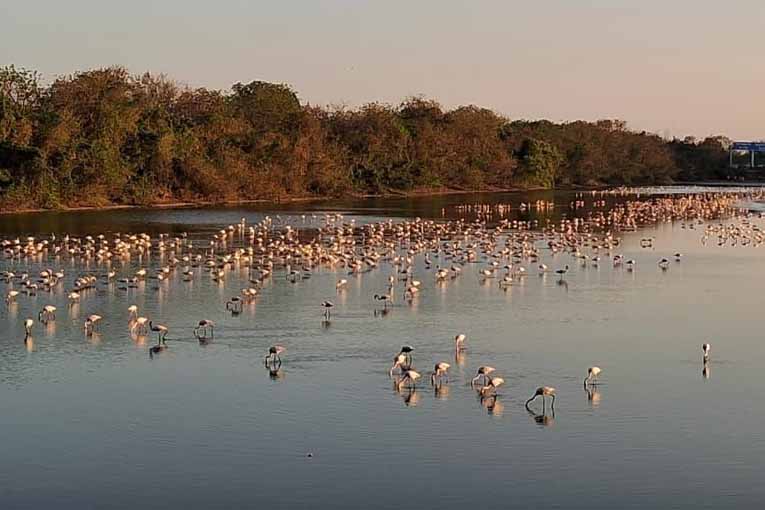 फ्लेमिंगो पाहण्यासाठी नागरिकांची गर्दी