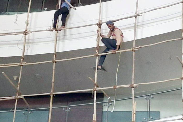 सुरक्षा साधनाविना सदर कामगार काम करत आहेत