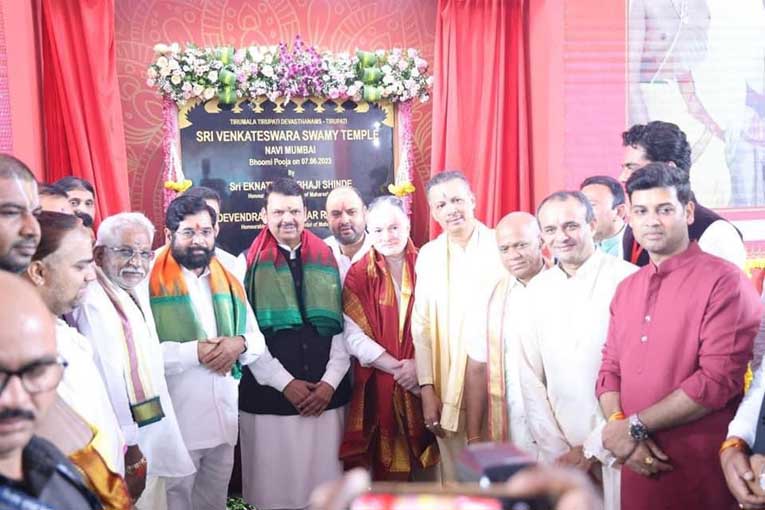 एमटीएचएल कास्टींग यार्डवरील जागेरवर तिरुपती बालाजी मंदिराचे भूमीपुजन