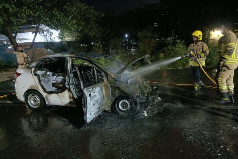 उलवे येथे राहणारा कार चालक खाजा मोइद्दिन शाहुल दिवाण शेख (46) याची हुंडाई एसेंट कार असून तो उबर च्या माध्यमातून आपली कार चालवतो. बुधवारी रात्री खाजा मोइद्दिन याला महालक्ष्मी येथून खारघर येथे जाण्यासाठी प्रवाशी भाडे मिळाले होते. त्यानुसार खाजा मोइद्दिन हा दोन प्रवासी घेऊन खारघर येथे जात होता. रात्री पावणे दहा वाजण्याच्या सुमारास त्याची कार सायन पनवेल मार्गावर वाशी गाव येथे आली असताना, कारच्या बोनेट मधून धूर येत असल्याचे चालकाच्या निदर्शनास आले. कार चालकाने व दोन प्रवाशांनी तत्काळ कारमधुन बाहेर पळ काढल्यानंतर कारने पेट घेतला. कार चालक व दोन प्रवाशांनी वेळीच कारमधुन बाहेर पडल्याने ते यातुन बचावले. या घटनेची माहिती मिळताच वाशी पोलिसांनी व अग्निशमन दलाच्या जवानांनी घटनास्थळी धाव घेतली.