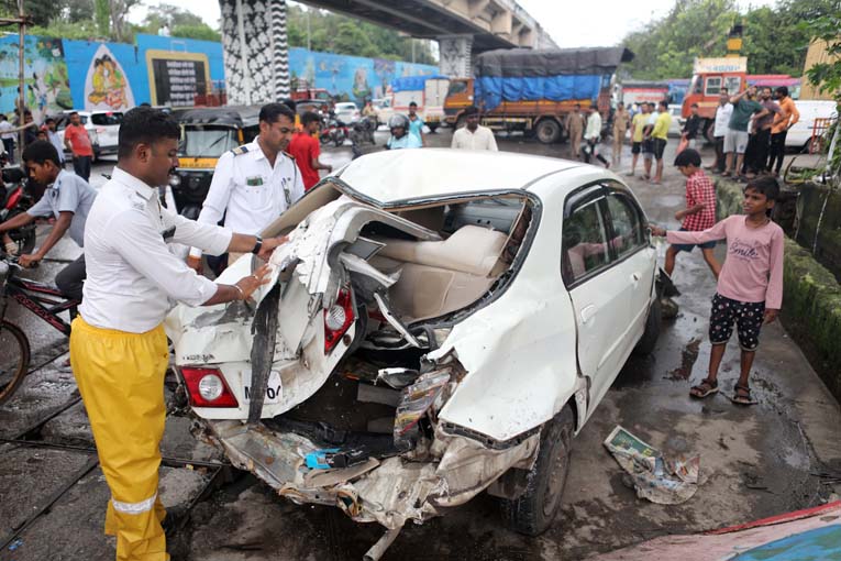 ब्रेक निकामी झालेल्या कंटेनरची ९ वाहनांना धडक