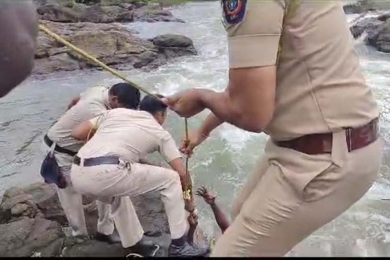 गाढेश्वर धरणाच्या प्रवाहात अडकुन पडलेल्या दोघांची पोलिसांकडुन सुखरुप सुटका