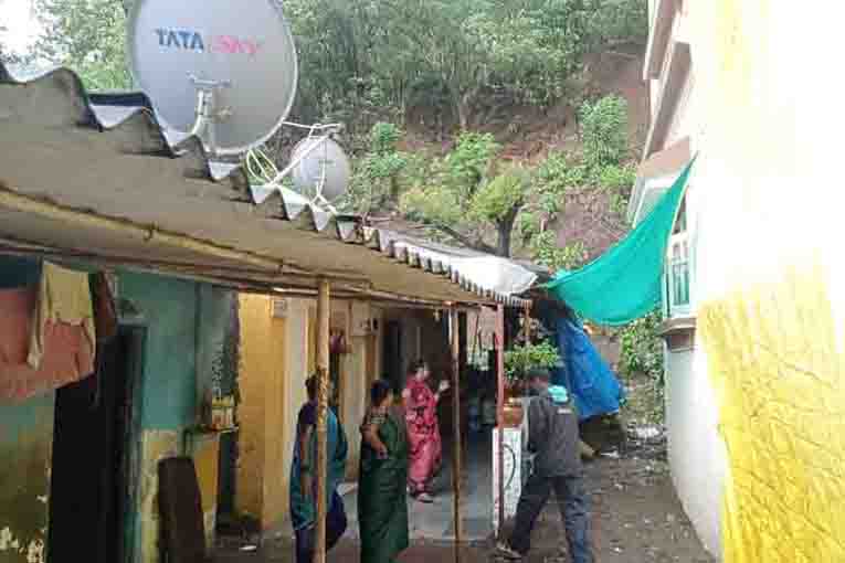 डाऊरनगर येथे घराजवळ दरड कोसळली