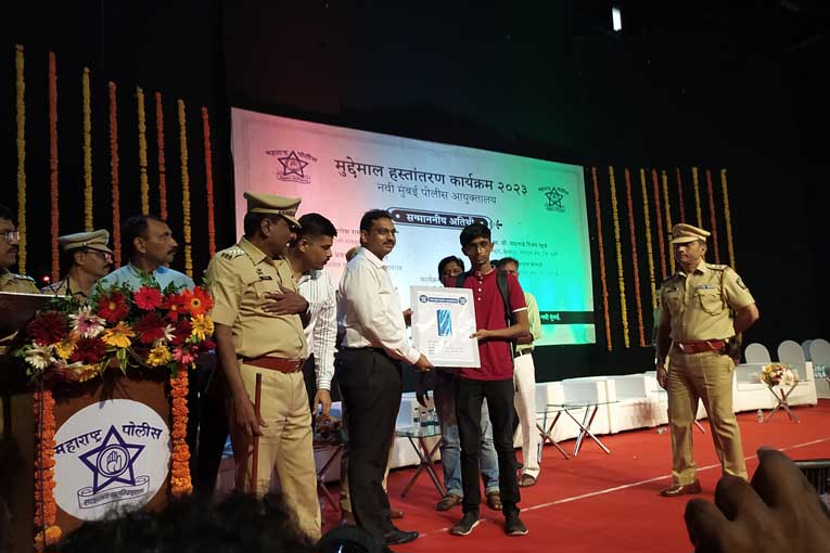नवी मुंबई पोलीस आयुक्तालय अंतर्गत असलेल्या सर्व पोलीस ठाण्यांतर्गत मागील वर्षभरामध्ये दाखल असलेल्या विविध गुन्ह्यांचा पोलिसांनी उत्कृष्टरित्या तपास करुन चोरीस गेलेला आणि फसवणूक केलेली मालमत्ता हस्तगत केली आहे. गत वर्षभरामध्ये नवी मुंबई पोलीस आयुक्तालयातील विविध पोलीस ठाण्यांनी तसेच गुन्हे शाखेने सुमारे ५ कोटी ४१ लाख रुपये किंमतीचा मुद्देमाल परत मिळविला आहे. हाच मुद्देमाल फिर्यादींना परत करण्यासाठी १४ ऑगस्ट रोजी वाशीतील सिडको एविझबिशन सेंटर मधील ऑडीटोरियममध्ये विशेष कार्यक्रमाचे आयोजन करण्यात आले होते. यावेळी प्रमुख पाहुण्यांच्या हस्ते १७४ फिर्यादींना त्यांचा मुद्देमाल परत करण्यात आला. या कार्यक्रमात सोने चांदीचे दागिने, रोख रक्कम, मोटार वाहने, मोबाईल आणि इतर वस्तु फिर्यादिंना परत करण्यात आल्या. यामध्ये प्रामुख्याने चेन स्नॅचिंग, घरफोडी, चोरी तसेच फसवणूक या सारख्या गुन्ह्यांचा समावेश आहे. दरम्यान, फिर्यादींना त्यांच्या मौल्यवान वस्तू परत मिळाल्याने त्यांनी पोलिसांचे आभार मानून समाधान व्यक्त केले.