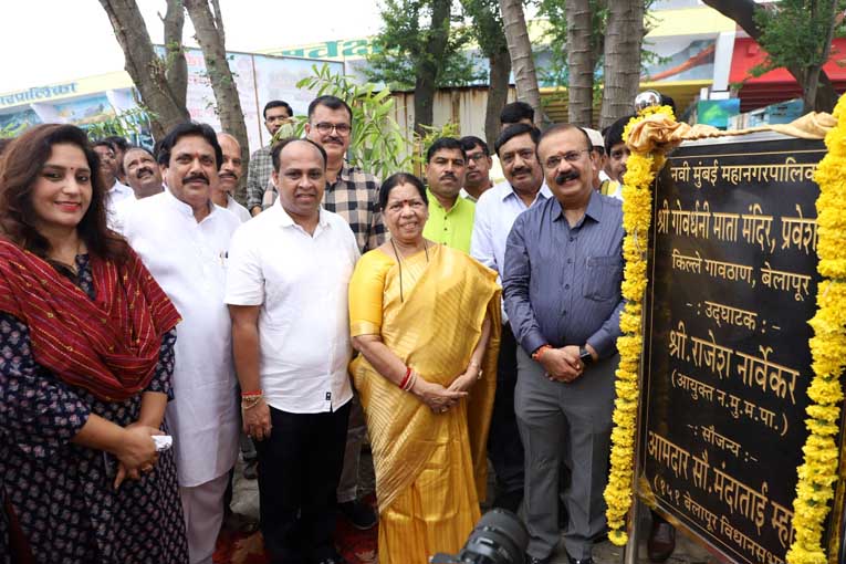 नवी मुंबई : नवी मुंबई महापालिका मुख्यालयासमोरील किल्ले गांवठाण येथील गोवर्धनी माता मंदिराकडे जाणाऱ्या मुख्य मार्गावर पामबीच नजिक उभारण्यात आलेल्या आकर्षक आई गोवर्धनी माता मंदिर प्रवेशद्वाराचे उद्घाटन महापालिका आयुक्त राजेश नार्वेकर यांच्या शुभहस्ते १ सप्टेंबर रोजी संपन्न झाले. याप्रसंगी ‘बेलापूर'च्या आमदार सौ. मंदाताई म्हात्रे, शहर अभियंता संजय देसाई, उपायुक्त सोमनाथ पोटरे, डॉ. बाबासाहेब राजळे, कार्यकारी अभियंता अरविंद शिंदे, सहा. आयुक्त शशीकांत तांडेल, माजी नगरसेवक डॉ. जयाजी नाथ, रामचंद्र घरत, अशोक गुरखे, सौ. नेत्रा शिर्के, दिपक पवार, सुनिल पाटील, ‘भाजपा'चे बेलापूर मतदारसंघ संयोजक निलेश म्हात्रे, जिल्हा महामंत्री डॉ. राजेश पाटील, पाशाभाई, ‘गोवर्धनी माता मंदिर ट्रस्ट'चे विश्वस्त ॲड. विनोद सोनटक्के आणि इतर मान्यवर उपस्थित होते.