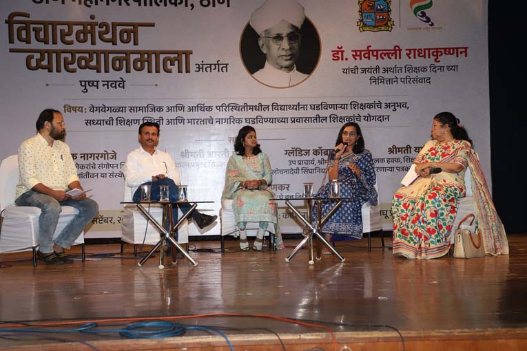 डॉ. सर्वपल्ली राधाकृष्णन् अर्थात शिक्षक दिनाच्या निमित्ताने ठाणे महानगरपालिकेच्यावतीने 'विचारमंथन' व्याख्यानमालेचे नववे पुष्प 'वेगवेगळया सामाजिक आणि परिस्थितीमधील विद्यार्थ्यांना घडविणाऱ्या शिक्षकांचे अनुभव, सध्याची शिक्षण स्थिती आणि नागरिक घडविण्याच्या प्रवासातील शिक्षकांचे योगदान' या विषयावर मान्यवरांनी गुंफले. या परिसंवात वंचित, निराधार, बेघर लेकारांचे संगोपन शिक्षण यासाठी कार्य करणारे बीड येथील शांतीवन संस्थेचे संस्थापक श्री. दीपक नागरगोजे, ठाण्यातील सिग्नल शाळेच्या प्रकल्प्रमुख आरती परब, श्रीमती सुलोचना देवी सिंघानिया शाळेच्या उपप्राचार्या ग्लॅडिज कॉब्राल, बालहक्क, शिक्षण या विषयाचा अभ्यास करणाऱ्या पत्रकार यामिनी सप्रे सहभागी झाले होते. या मान्यवरांची मुलाखत आकाशवाणीचे वृत्तनिवेदक राजेंद्र पाटणकर यांनी घेतली. कार्यक्रमाच्या सुरूवातीला सर्व मान्यवरांचा सत्कार महापालिकेचे अतिरिक्त आयुक्त 1 संदीप माळवी, अतिरिक्त आयुक्त 2 प्रशांत रोडे यांच्या हस्ते ग्रंथबुके देवून करण्यात आला.