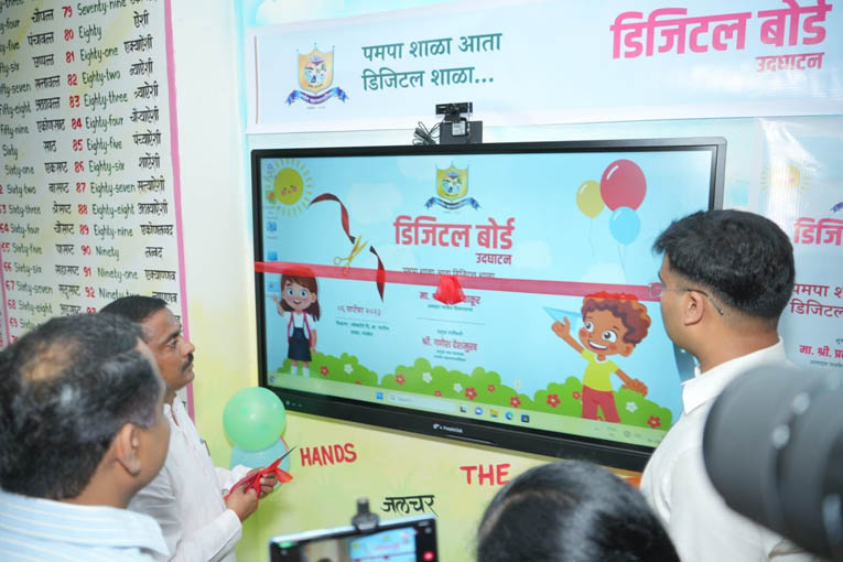 या डिजीटल बोर्डमध्ये अंतर्गतच कॉम्प्युटर जोडलेला आहे. या डिजीटल बोर्डमध्ये मराठी, उर्दू, गूजराती अशा तीन माध्यमातील पहिली ते सातवीच्या वर्गांचा सर्व विषयांचा अभ्यासक्रम आहे. तसेच युट्युबचा पर्यायही यावर उपलब्ध आहे. कॉम्प्युटर प्रमाणे यामधील हव्या असणाऱ्या वर्गाच्या, हव्या त्या विषयातील धड्यावर जाऊन सिलेक्ट केले असता, ॲनिमेटेड स्परुपात तसेच शिक्षक शिकवतात. त्याप्रमाणे सर्व अभ्यासक्रम स्क्रीनवर दिसणार आहे. तसेच व्हिडीओ कॉन्फरन्सिंगही करता येणार आहे. डिजीटल बोर्ड शेअर करुन एकाचवेळी शिक्षकांना अनेक वर्गांना शिकविता येणार आहे.