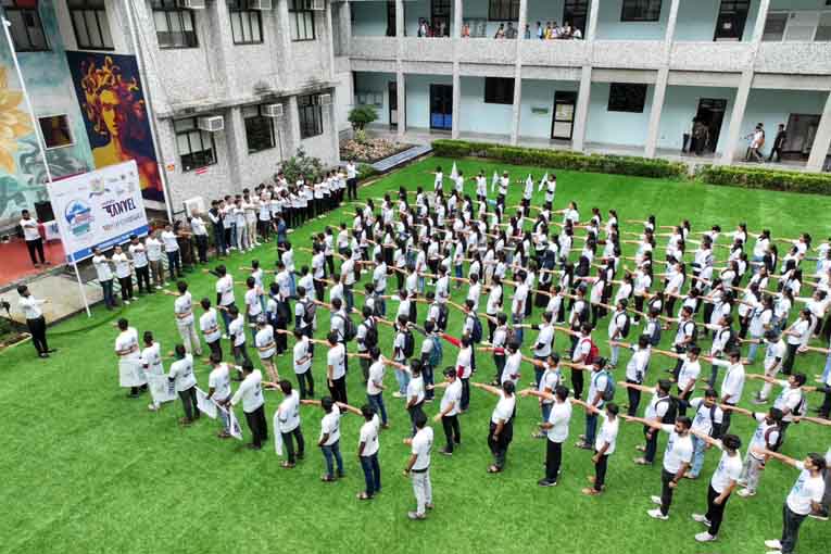 पिल्लई महाविद्यालयाच्या विद्यार्थ्यांनी बनवली प्रतिकात्मक मानवी साखळी