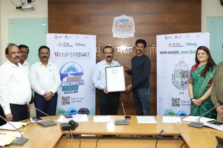 नवी मुंबई : इंडियन स्वच्छता लीग २.० अंतर्गत नवी मुंबई महापालिकेचा ‘नवी मुंबई इको नाईटस् संघ आपले मागील वर्षीचे सर्वाधिक युवक सहभागाचे प्रथम क्रमांकाचे राष्ट्रीय मानांकन कायम राखण्यासाठी सज्ज झाला असून त्या अनुषंगाने १२ सप्टेंबर पासून विविध उपक्रमांचे आयोजन करण्यात येत आहे. या अंतर्गत आयोजित करण्यात आलेल्या शालेय स्तरावरील स्वच्छ चित्रकला स्पर्धेमध्ये १५ सप्टेंबर रोजी महापालिका क्षेत्रातील महापालिका आणि खाजगी अशा ४३१ शाळांमधील १,८३,१४४ विद्यार्थ्यांनी नोंदणी करुन सहभागी होत विक्रम नोंदविलेला आहे. या विक्रमाची नोंद ‘बेस्ट ऑफ इंडिया रेकॉर्डस्' मध्ये घेण्यात आली असून १ लाखाहून अधिक विद्यार्थी सहभागाचे विक्रमी प्रमाणपत्र ‘बेस्ट ऑफ इंडिया रेकॉर्डस्'चे भारतातील परीक्षक आंतरराष्ट्रीय क्रीडापटू बी. बी. नायक यांनी महापालिका आयुक्त राजेश नार्वेकर यांना प्रदान केले.