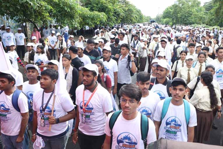 पनवेल : केंद्रशासनाच्या निर्देशाप्रमाणे स्वच्छ भारत अभियानाची पनवेल महानगरपालिका हद्दीमध्ये प्रभावीपणे अंमलबजावणी सुरु आहे.पनवेल महानगरपालिकेमार्फत प्रगतीशील पनवेल टीम, “इंडीयन स्वच्छता लीग २.०” या स्पर्धेमध्ये सहभागी असुन सदर स्पर्धेमध्ये सहभागी आहे. महापालिका कार्यक्षेत्रातील शाळा, महाविद्यालयाचे विद्यार्थी व नागरिक यांना सहभागी करुन घेण्यासाठी पनवेल जनजागृती करण्याच्या दृष्टीने आज दिनांक १७ सप्टेंबर रोजी सकाळी ७.३० वाजता खारघर, कामोठे, कळंबोली, पनवेलमध्ये या चारही प्रभागांमध्ये स्वच्छता रॅलीचे आयोजन महापालिकेच्यावतीने करण्यात आले होते. चारही प्रभागामधील रॅलीला दहा हजारुन अधिक संख्येने उपस्थित तरुणांचा,नागरिकांचा उदंड प्रतिसाद मिळाला.